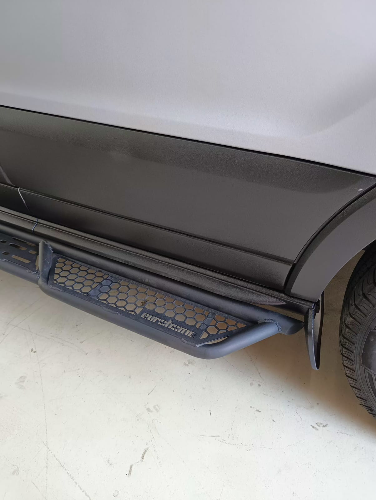 Estribos laterais fabricado em tubo e chapas de aço cortados a laser com pintura eletrostática a pó.